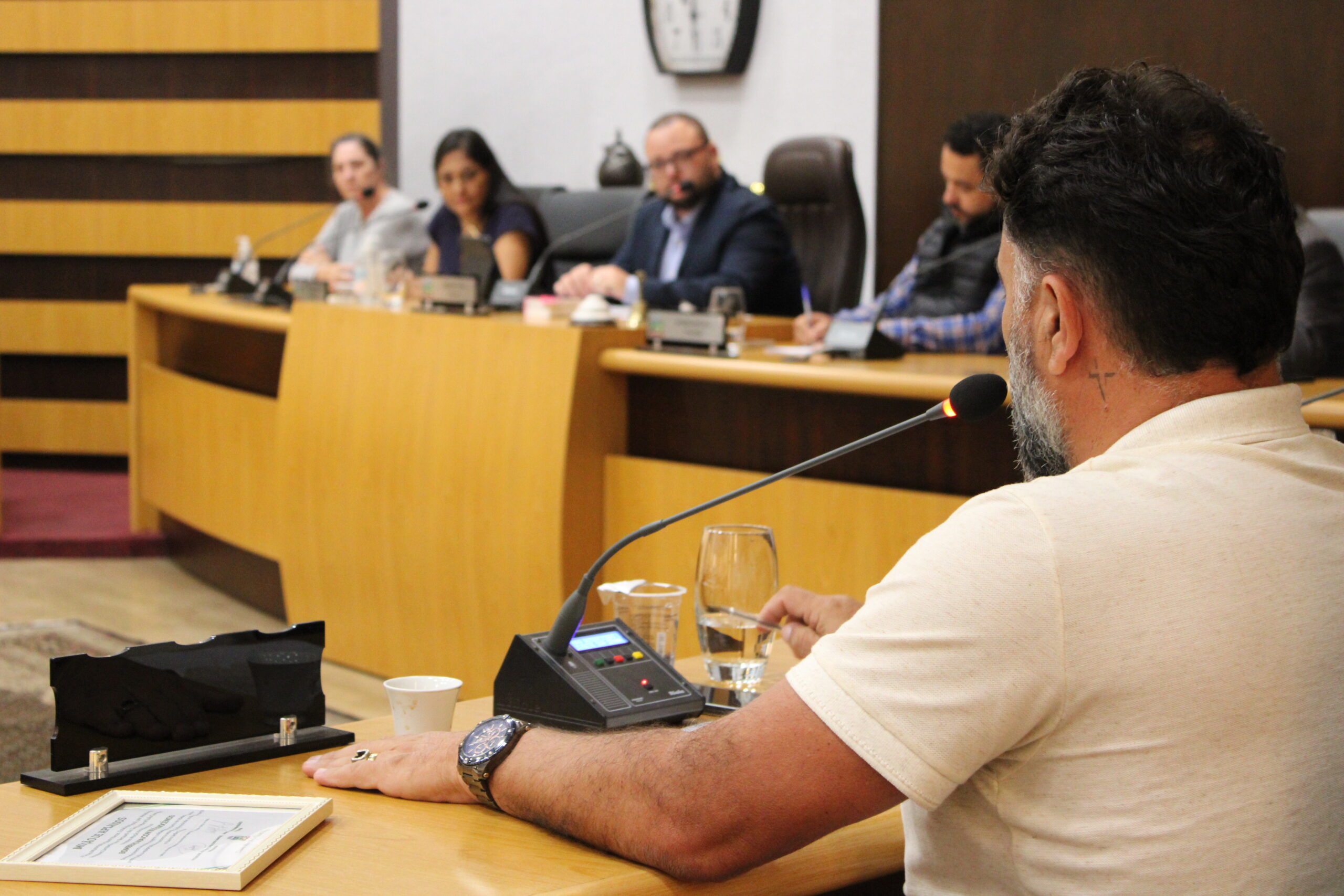 Durante a sessão, também foi realizada a leitura de Moção de Aplausos, de autoria dos vereadores Marcel Júlio Guimarães e Jacqueline Joice Bertapeli, em reconhecimento a Claudia Barbosa de Campos e Maicon José Inocêncio, destacando a contribuição dos homenageados para a comunidade.